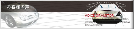 - 雹が降った時に小さなヘコミがたくさん出来て困っていたのですが、見事にすべてのヘコミがなくなりました。デントリペアのことは今まで知らなかったので不安でしたが、板金よりも安くしかもきれいに直していただいて感謝しています。ありがとうございました。